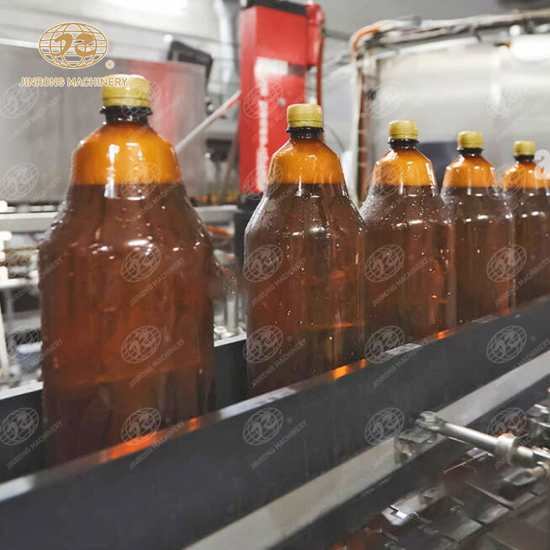 PET瓶啤酒灌裝生產(chǎn)線在灌裝前對(duì)PET瓶進(jìn)行沖洗,以去除瓶?jī)?nèi)的雜質(zhì)和殘留物,確保啤酒的純凈度和口感。